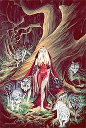 Loba Maiden Queen Riding Hood, all grown up & ruler of the 2nd Kingdom, but captive of the 10th Kingdom.